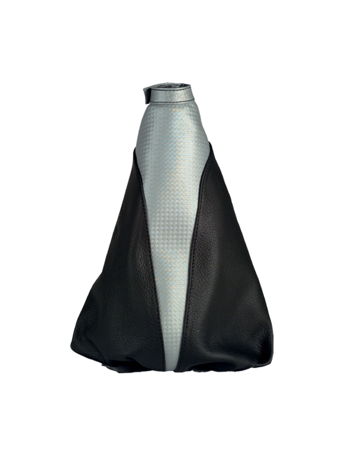 MP201/23 Cuffia universale in pelle nera con inserto in pelle metal argento completa di base per il fissaggio