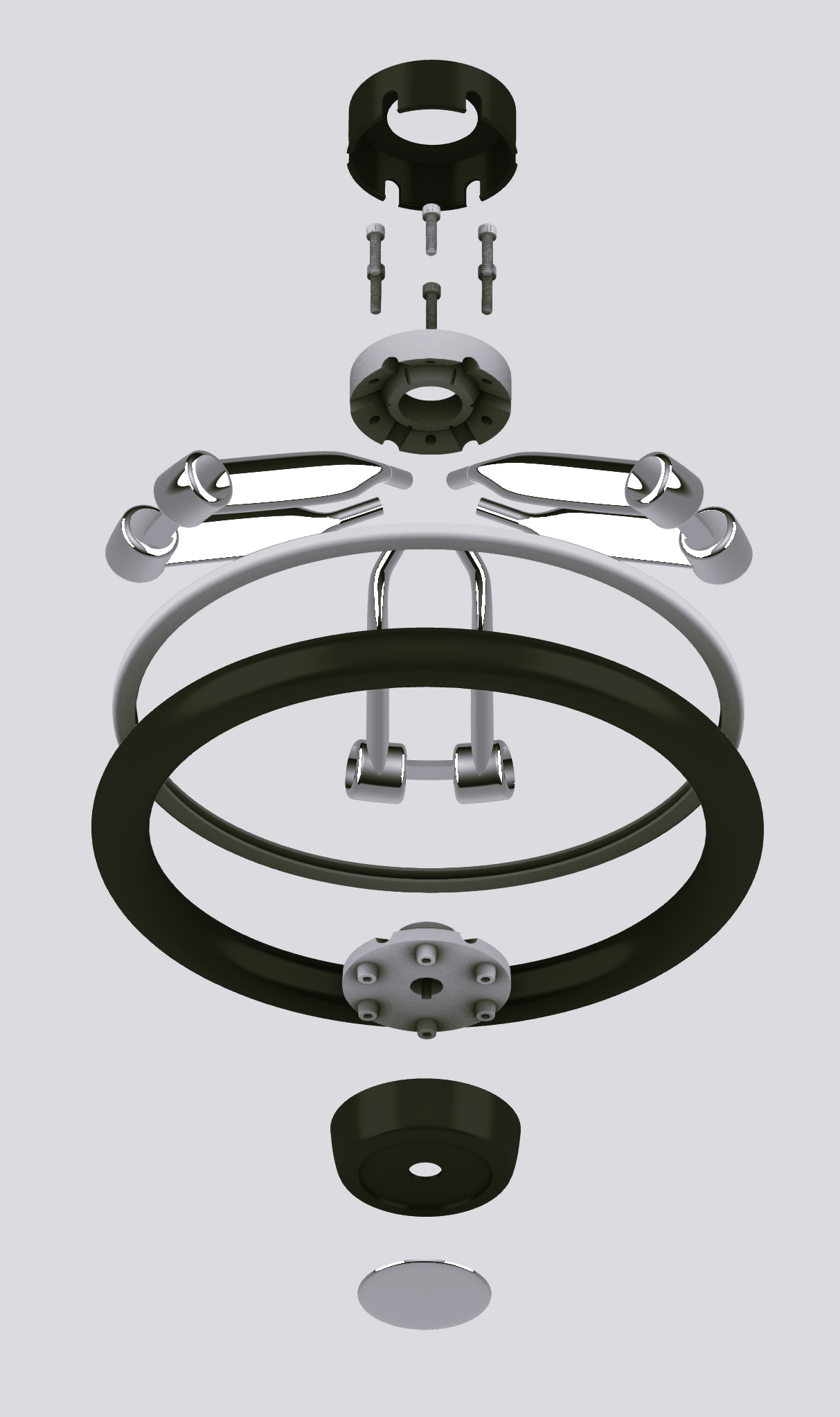Volante nautico diametro 350 mm, razze in acciaio inox, mozzo in alluminio con attacco da 3/4 di pollice o cono 19, corona in poliuretano.